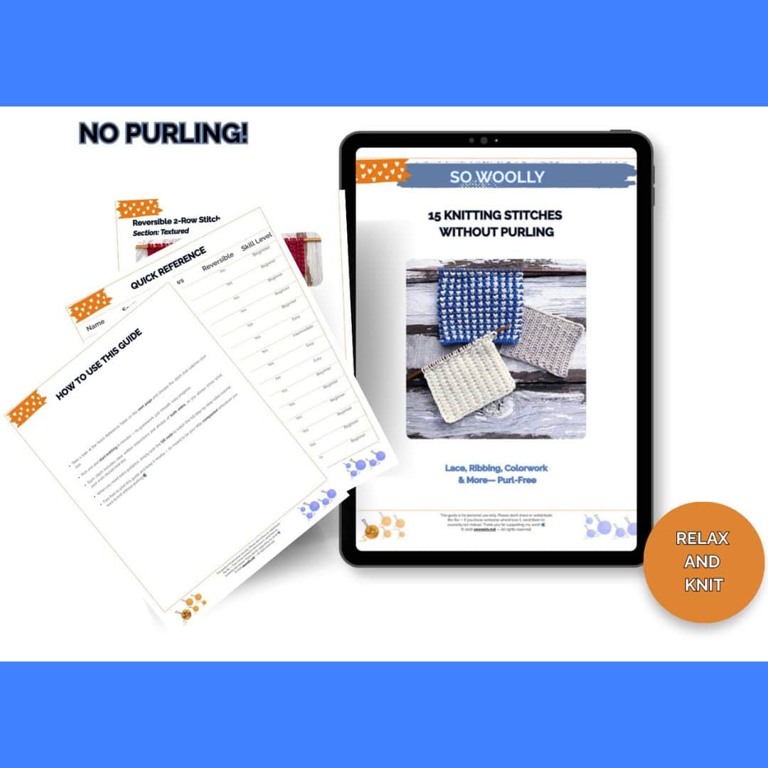 This printable PDF includes 15 beautiful stitch patterns you can knit without purling, using simple techniques that keep your rhythm flowing.